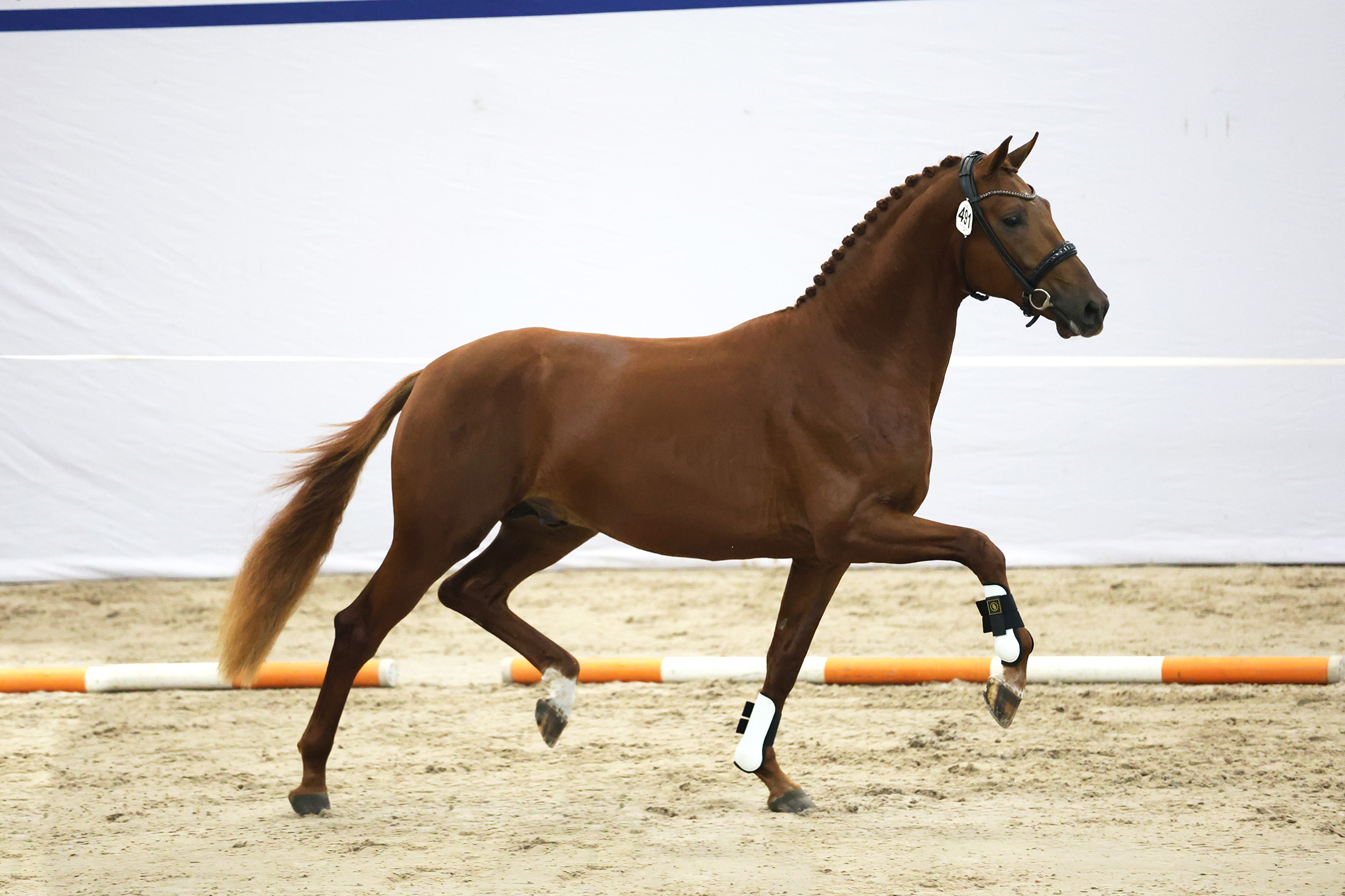 Der dreijährige Hengst Oranje überzeugt sofort mit seinem Aussehen, drei kräftigen Gangarten und seiner auffälligen Selbsthaltung. Er ist ein moderner, vollständiger Hengst mit einem feinen Charakter und zeigt bereits ein echtes Potenzial für die Zukunft.