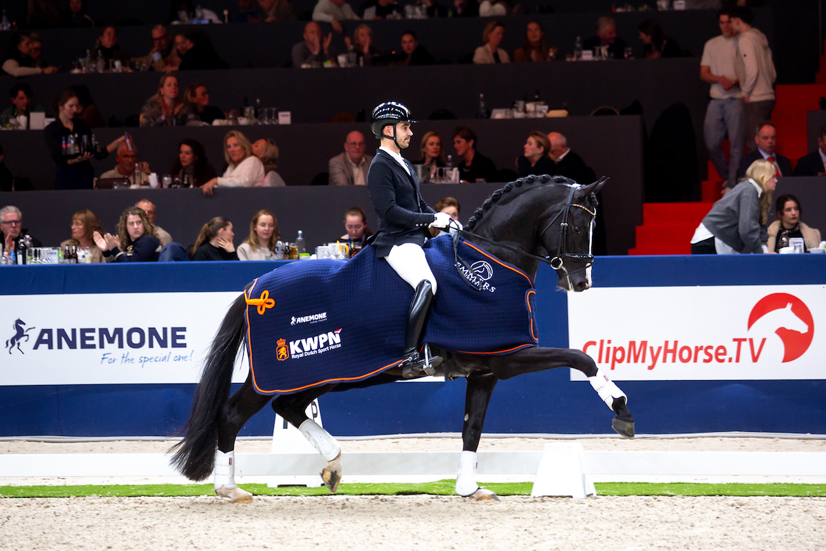 Mit Royal Dynamic haben wir wirklich ein neues Talent für unsere Deckstation entdeckt. Ein sehr schöner, sehr korrekter und langliniger Hengst mit viel Hengstausstrahlung und drei sehr guten Grundgangarten. Er wirkt sehr komplett, hat eine gute Einstellung und will wirklich sein Bestes für den Reiter geben. Renate reitet ihn seit der KWPN-Leistungsprüfung und er gibt ihr ein sehr gutes Gefühl, selbstbewusst, stabil und mit einer guten Gehbereitschaft. Während der hektischen KWPN Hengstschau nahm unser Reiter Alvaro Rodriquez Siscar die Zügel in die Hand und präsentierte dort alle unsere 3 Junghengste. Er zeigte sich bei dieser Präsentation des neuen Jahrgangs fantastisch. Was für eine Ausstrahlung dieser Hengst hat, wurde auch von Bart Bax, dem Vorsitzenden der KWPN-Hengstauswahlkommission, sehr gut beschrieben.